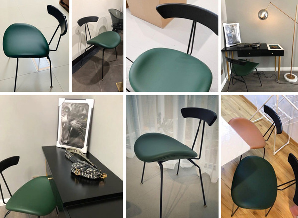 • Chair Project Dining Chair is made of bent solid iron bar legs, UP leather seat panels, and Solid timber back support panels.