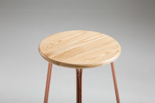 Scandinavian Bent Steel Bar Stool | Bronze Copper Natural Elm | With Cushion | 65 CM