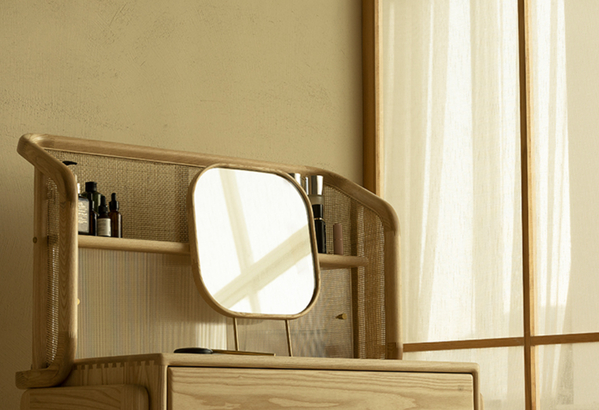 Danish Dressing Table | Ziihome Solid Timber | Single Draw with Woven Cane Mesh | Ash
