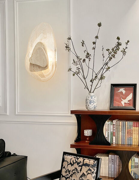 Inspired by organic river stones, the Clear Pebble LED Wall Lamp features an asymmetrical oval glass base paired with yellow travertine. The warm white light enhances the transparency of the glass while highlighting the stone’s natural texture. This sculptural wall lamp brings a soft, calming glow ideal for bedrooms, living areas, and spa-inspired interiors. The irregular shape adds an artistic, handcrafted feel, making each installation visually unique. Designed for modern organic and contemporary spaces, this wall light blurs the line between lighting and art.