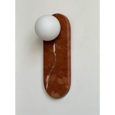 LED Wall Lamp | Oval Bulgari Marble | Frost Glass Shade | 10x27cm | Bold Terracotta-Red Base