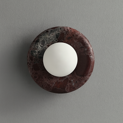 Featuring a rich terracotta-red marble base, this Round Bulgari Marble LED Wall Lamp brings warmth and depth to any interior. The frost glass shade softens the light, creating a comfortable ambient glow. With a 20cm diameter, it’s ideal for feature walls, bedrooms, and living spaces. The natural stone surface adds texture and uniqueness, ensuring every lamp is one of a kind. Designed for modern, Mediterranean, and artistic interiors, this wall light offers a bold yet elegant statement.