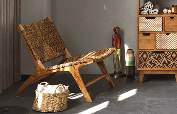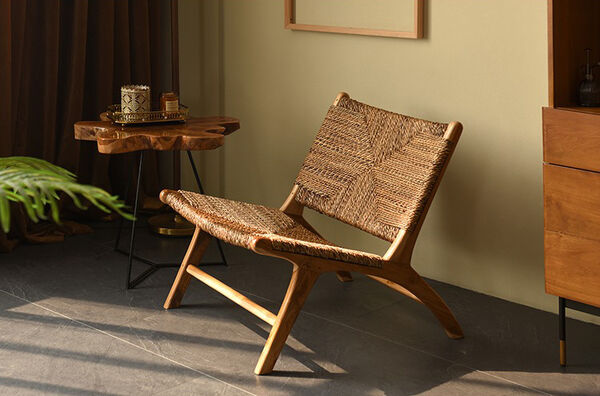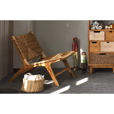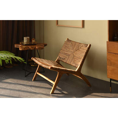 Woven Lounge Chair | Muruya | Rush Rattan Woven Seat | Teak Timber Frame