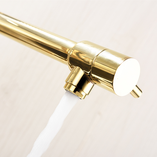 Kitchen Sink Mixer | Round Twin Oulets | Spring Pull-out Handle | Gold