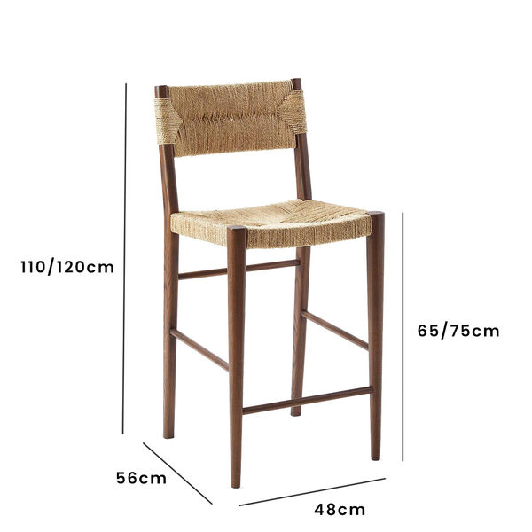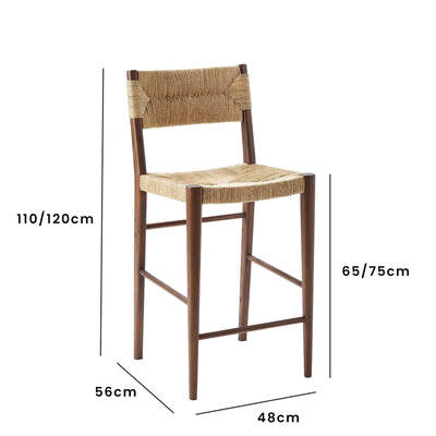 Woven Counter Stool | Harbour | Rush Rattan Woven Seat | Teak Timber Frame | Stained Walnut | 65cm