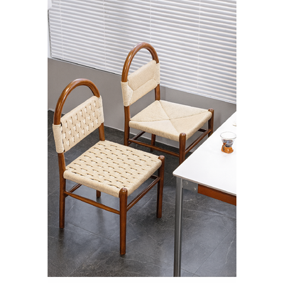 Woven Dining Chair | Vivan | Rattan Rope Seat | Teak Timber Frame | Natural Teak Timber | Stripe Pattern