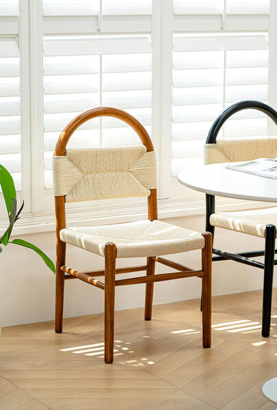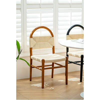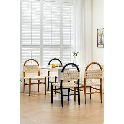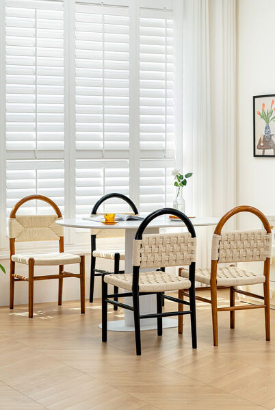 The Vivan Dining Chair with stripe-pattern rattan rope weaving offers a fresh, contemporary take on classic woven seating. Paired with a natural teak timber frame, the chair radiates warmth and understated luxury. The striped weave creates subtle contrast and visual rhythm while maintaining the comfort and breathability of premium rattan rope.