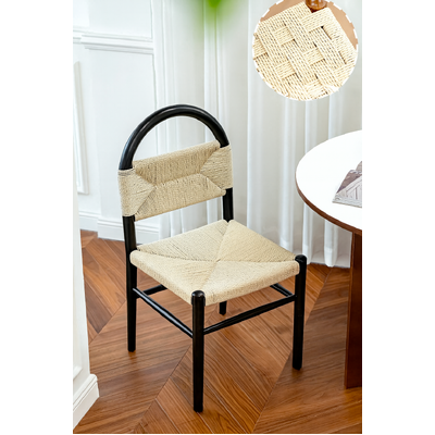 Woven Dining Chair | Vivan | Rattan Rope Seat | Teak Timber Frame | Black Coated Teak Timber | Stripe Pattern